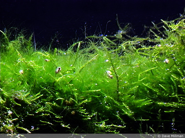 Este tipo de algas, sólo se hallan en acuarios con una intensidad lumínica de 0.2 W/l o menor.