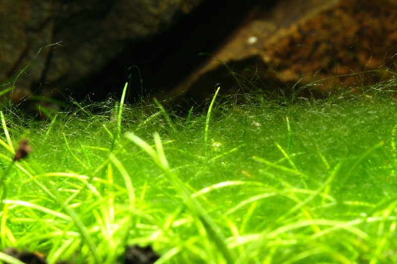 Posee filamentos delgados, verde claros o intensos. Se asientan aislados y en gran número en partes activas de las hojas, pudiendo formar una capa firme y compacta a modo de barba o piel. Estas algas puedes tener un largo desde 2 a 4 cm. Esta es una de las algas verdes más difíciles de combatir, pues se sostienen firmemente en las hojas de las plantas.