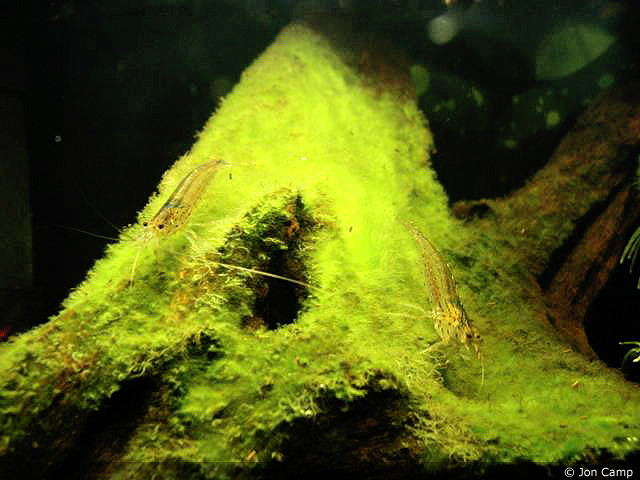 Acá el más famoso y eficaz es Caridina Japonica. Este camarón no es muy exigente en parámetros de agua, además de ser un elemento que ayuda a controlar las algas muy eficazmente, la introducción de unos 5-7 ejemplares ayudara al control eficaz de las algas.